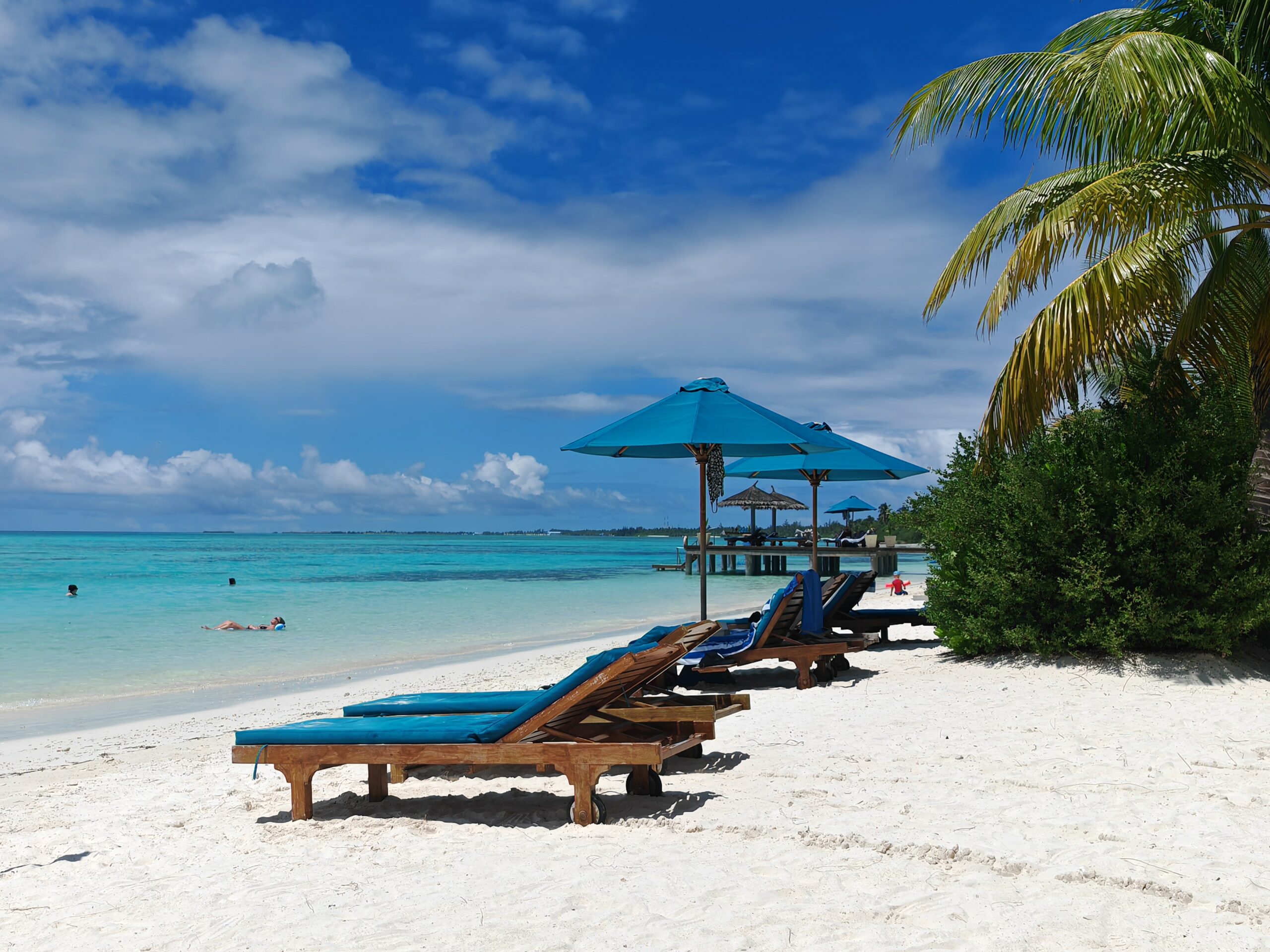 Die Sunrise Villas auf der Ostseite liegen an einer flacheren Lagune. Das Wasser ist wärmer, weil es tagsüber mehr Sonne abbekommt, und flacher, was für Familien mit Kindern besser passt. Wer nicht sicher im Wasser ist oder einfach lange im Flachgewässer stehen möchte ohne Strömung zu spüren, ist hier richtig.